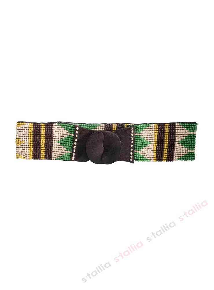 Аксессуары от итальянского производителя Iconique. Яркий пояс коллекции "Maya" из бусин с деревянной застежкой. Прекрасно дополнит купальную одежду.