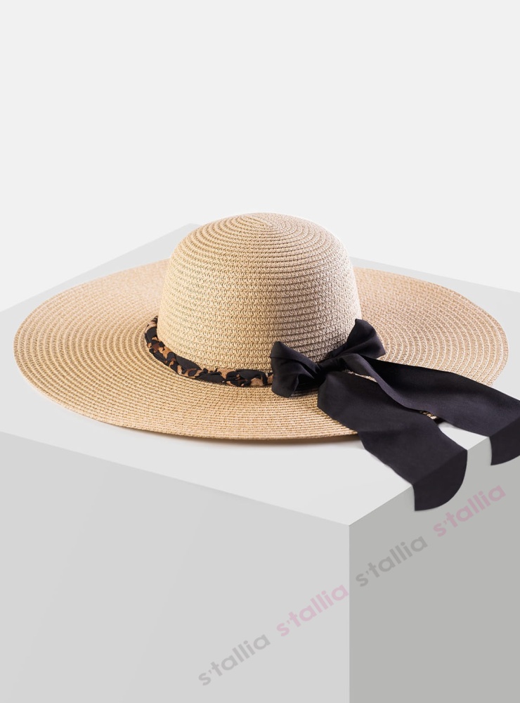 Пляжные аксессуары от европейского производителя Feba. Стильная плетённая шляпа с широкими полями в бежевом цвете. Дополнена лентой с леопардовым принтом. Отлично пропускает воздух и защищает от ультрафиолета. Прекрасно дополнит купальники и пляжную одежду. Состав: 100% пресс-папье