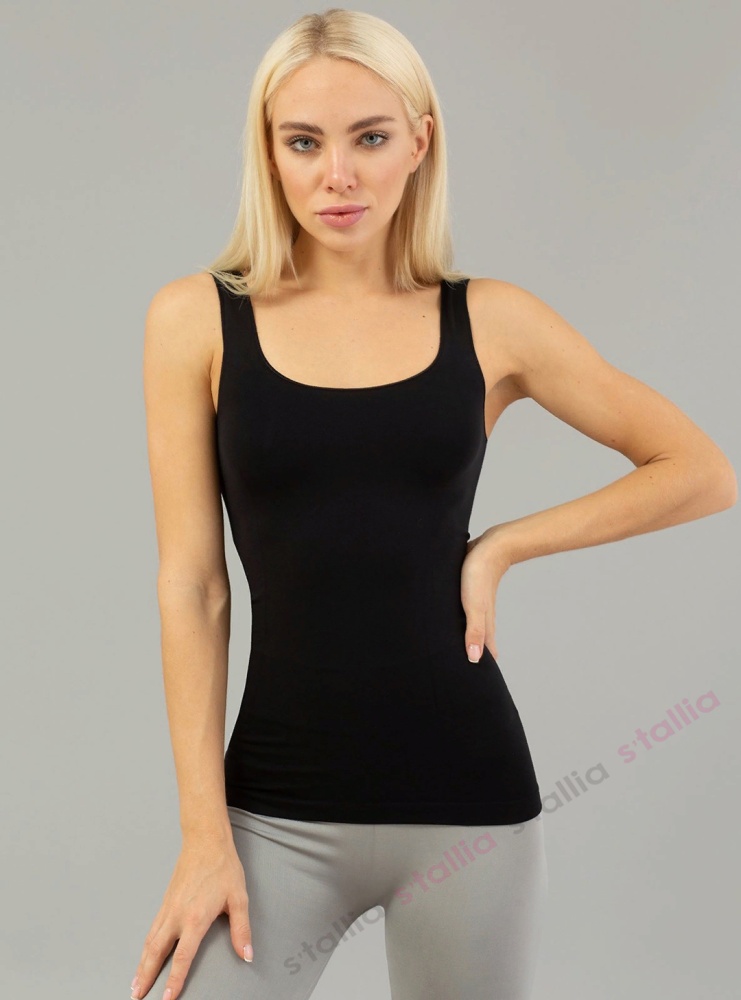 Бесшовная одежда от европейского производителя Giulia. Классическая майка на широких бретелях из эластичной микрофибры. Прекрасно подойдет как для повседневной носки так и для занятий спортом. Состав: полиамид 93%, эластан 7%