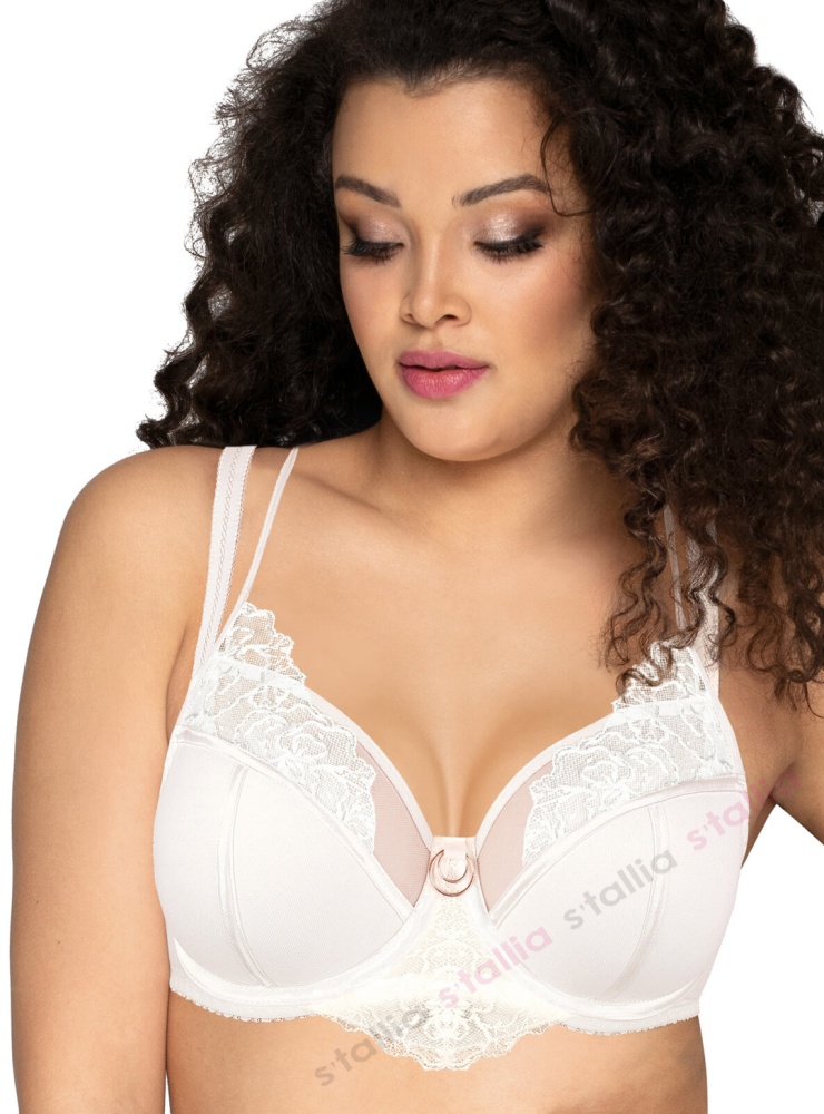 Женское белье от европейского производителя Ava. Комфортный бюстгальтер для дам с грудью средней и большой полноты. Полумягкие сшивные чашечки на каркасах с тройным диагональным членением прекрасно собирают и скругляют грудь, обеспечивая идеальную посадку. Низ чашек продублирован современным материалом. Чашки изнутри проложены хлопком для дополнительного комфорта. Верх выполнен из тюлевой сеточки с цветочной вышивкой. Боковые детали укреплены вертикальными упругими пластинами. Бюстгальтер декорирован сверкающей подвеской в виде двух колец. В комплект входит удлинитель объёма. Может быть дополнен плавочками или бразилками из этой же коллекции. Коллекция "Jazz Soul". Состав: Полиамид 88%, Хлопок 8%, лайкра 4%