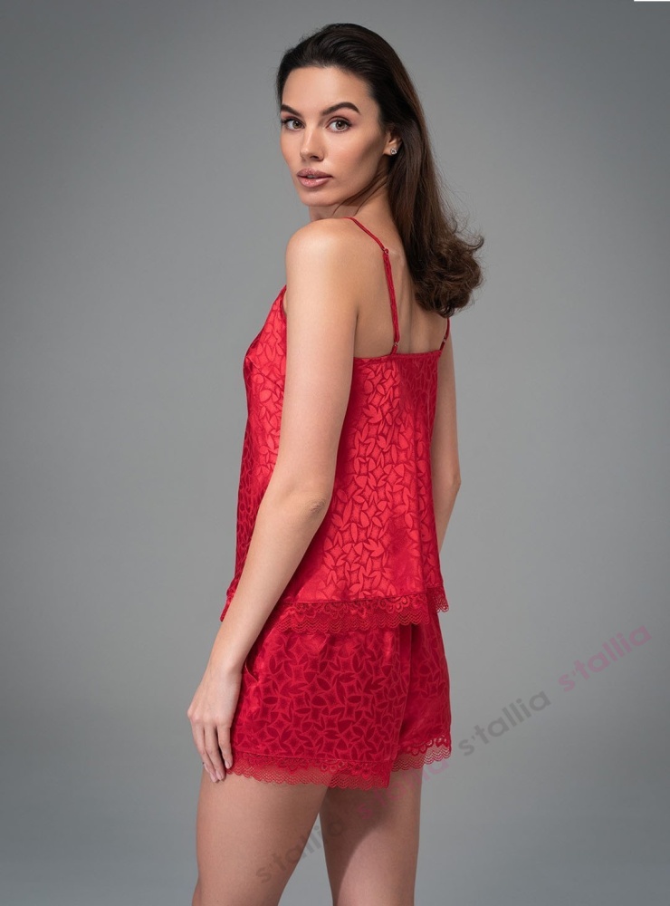 Итальянская домашняя одежда. Комплект из искусственного шелка с жаккардовым рисунком. Состоит из топа и коротких шортиков. Вырез декорирован ажурным кружевом с кокетливым бантиком и подвеской. Бретели регулируются. Коллекция "Джоанна". Состав: 100% полиэстер.