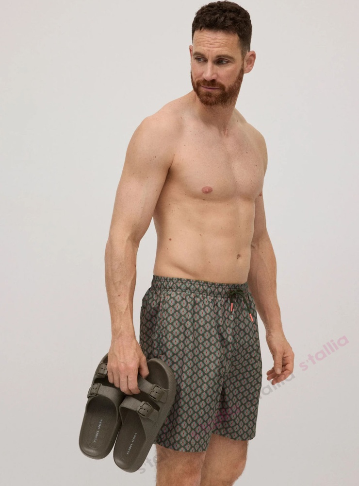 Удобные пляжные шорты выполнены из облегчённого быстросохнущего материала устойчивого к деформациям и воздействию солнечных лучей. По талии проходит резинка, а также кулиска с регулируемым объем шнурком. Шорты продублированы внутри сеткой. В боковых швах удобные небольшие карманы. Состав: полиамид 100%