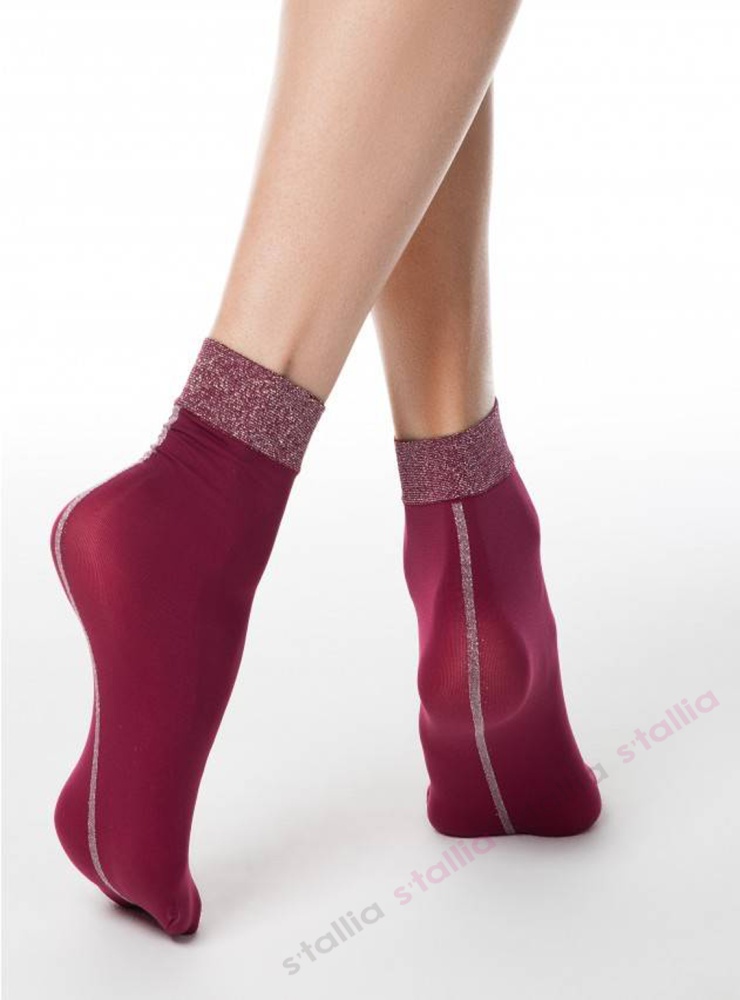 Стильные носочки плотностью 20den из микрофибры. Усиленный мысок и комфортная резинка. Декорированы люрексом. Состав: полиамид 78%, эластан 20%
