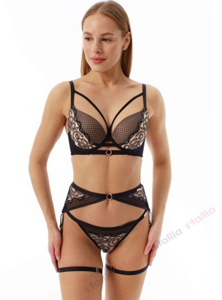 Женское белье от европейского производителя Coquette Revue. Роскошные пояс в черно-бежевом цвете. Выполнен из тюлевой сеточки с рисунком змеи. Прекрасно дополнит бюстгальтеры и плавочки из этой же коллекции. Коллекция "Snake". Состав: Полиамид 85%, Эластан 15%