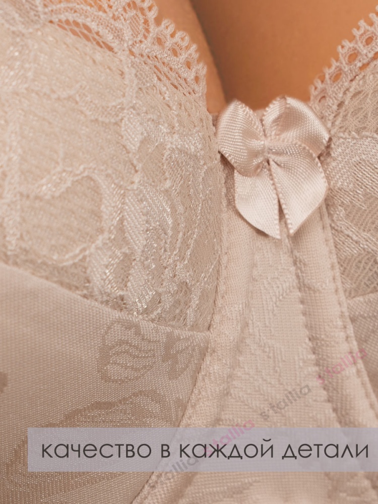 Женское белье от европейского производителя Albina. Комфортный бюстгальтер для дам с грудью средней и большой полноты. Выполнен из мягкого полотна soft с нежным цветочным орнаментом и тюлевой сеточки с вышивкой. Полумягкие сшивные чашечки на каркасах с тройным диагональным членением прекрасно собирают и скругляют грудь, обеспечивая идеальную посадку. Внутренняя сторона чашек продублирована хлопком для дополнительного комфорта. Широкий эластичный пояс укреплен упругими вертикальными пластинами для плотного прилегания и предотвращения скручивания. Чашка C,D,E,F,G. Бюстгальтер декорирован атласным бантиком. Бретели регулируются. Может быть дополнен классическими плавочками или шортиками из этой же коллекции. Коллекция "Comfort". Состав: Полиамид 65%, Эластан 20%, Хлопок 15%