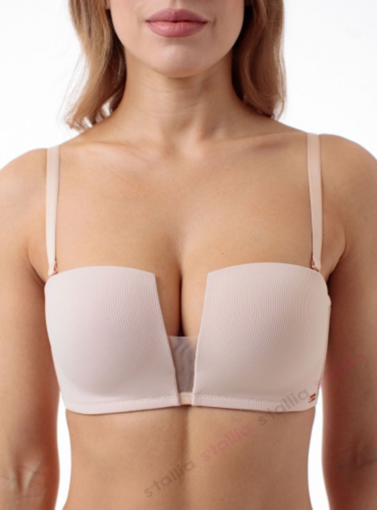 Женское белье от европейского производителя Coquette Revue. Бюстгальтер на поролоне без каркасов.Чашка планж, декольтированная. Выполнен из шелковистой микрофибры в рубчик. Между чашек перемычка из тюлевой сеточки. Бретели съемные с регулировкой. Украшение: медальон COQUETTE REVUE. Коллекция "Lucky