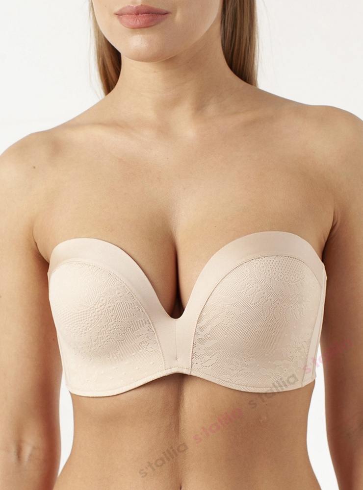 Женское белье от европейского производителя Coquette Revue. Классический бюстгальтер с чашками бандо в бежевом цвете. Выполнен из эластичного материала и кружевной тюлевой сеточки. Чашки на плотных, фигурных каркасах, что позволяет носить бюстгальтер без бретелей. Широкий эластичный пояс изнутри продублирован силиконовыми лентамии для плотного прилегания и предотвращения скручивания. Бретели регулируются и могут отстегиваться. Коллекция "Secret". Состав: Полиамид 85%, Эластан 15%