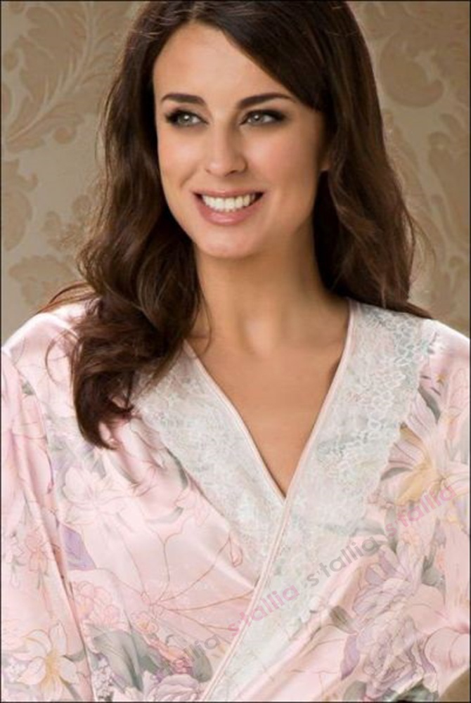 Итальянская домашняя одежда. Халат из натурального струящегося шелка с нежным цветочным принтом. Декорирован ажурным кружевом. Завязывается на пояс. Прекрасно дополнит сорочку из этой же коллекции. Коллекция ""Эдем"" Состав: 70% натуральный шелк, 25% полиэстер, 5% эластан"