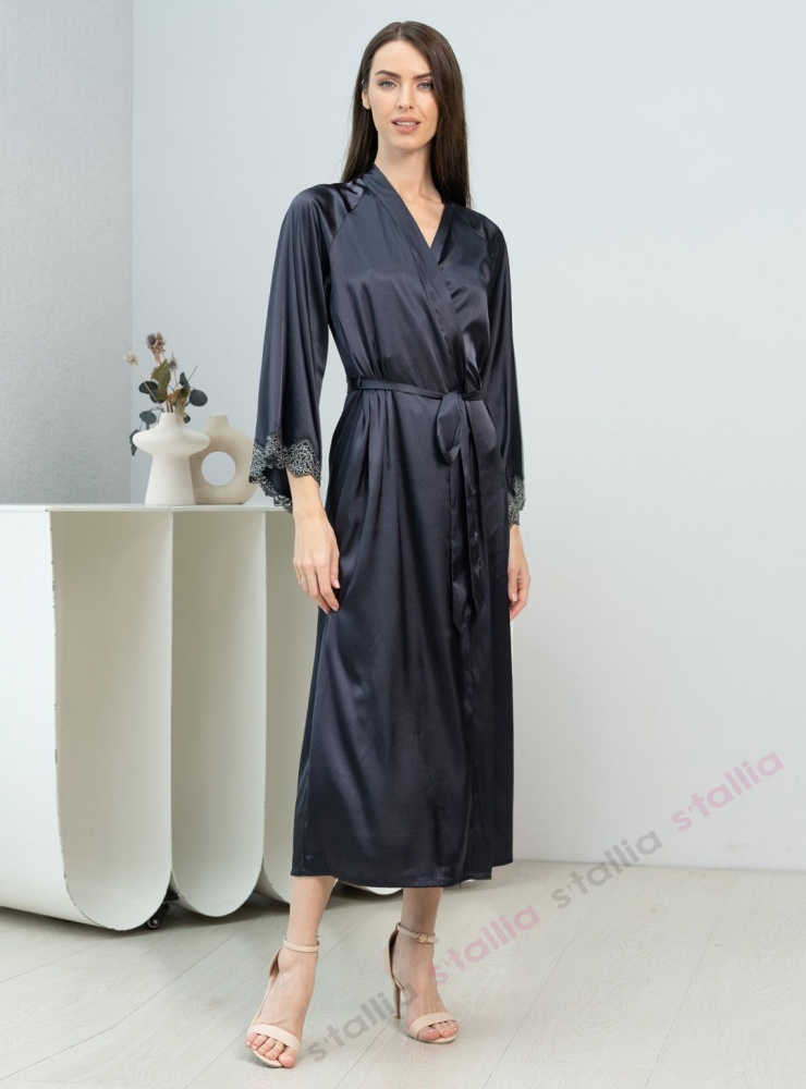 Итальянская домашняя одежда. Длинное кимоно из натурального шелка. Рукава декорированы кружевом, по бокам втачные карманы. Прекрасно дополнит сорочку из этой же коллекции. Коллекция "Эммануэль. Состав: 70% натуральный шелк, 25% полиэстер, 5% эластан."