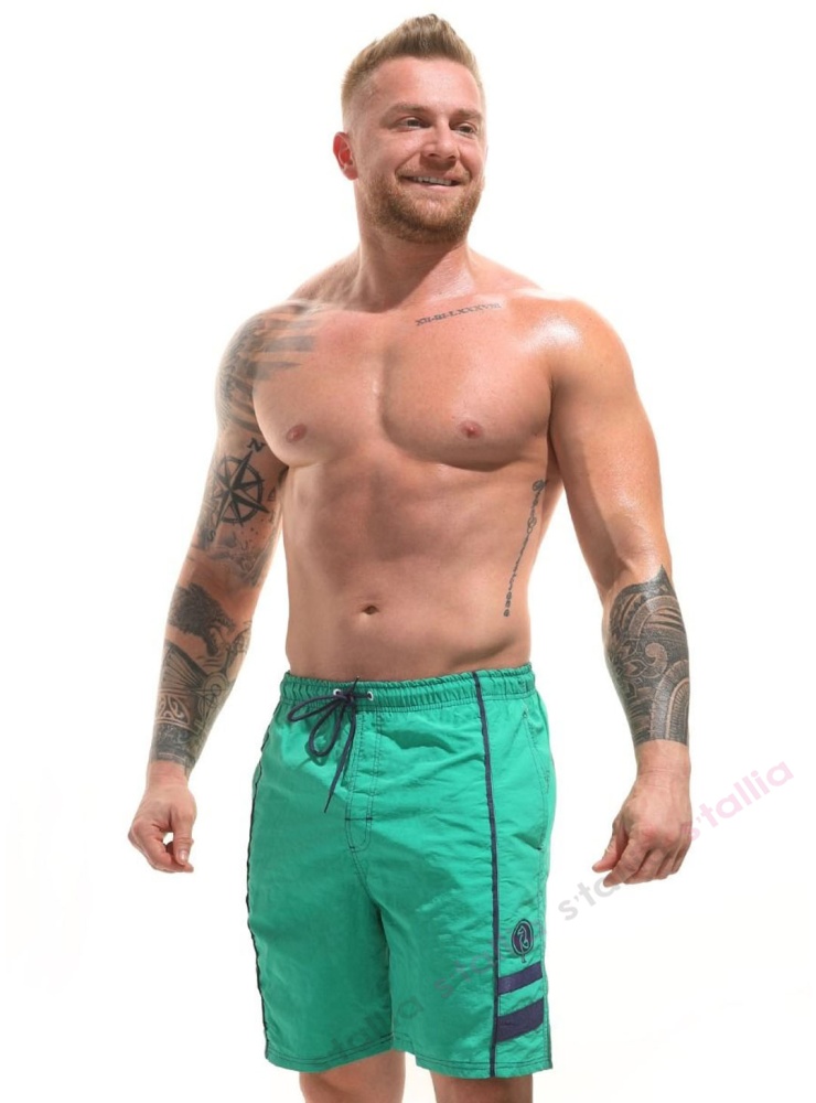 Удобные пляжные шорты выполнены из быстросохнущего материала устойчивого к деформациям и воздействию солнечных лучей. По талии проходит резинка, а также кулиска с регулируемым объем шнурком. Шорты продублированы внутри сеткой. В боковых швах удобные небольшие карманы. Состав: полиамид 100%
