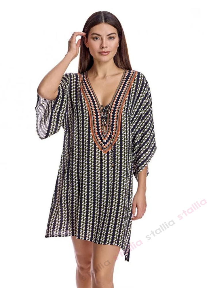Купальники и пляжная одежда премиального сегмента от испанского бренда "ORY" работающего с 1964 года. Cвободное пончо коллекциии "Ламберто". Вырез декорирован шнуровкой с бусинами. Прекрасно дополнит купальники из этой же коллекции.
